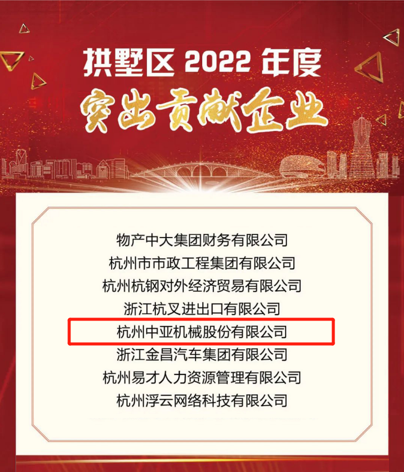 中亚股份荣获拱墅区2022年度突出贡献企业